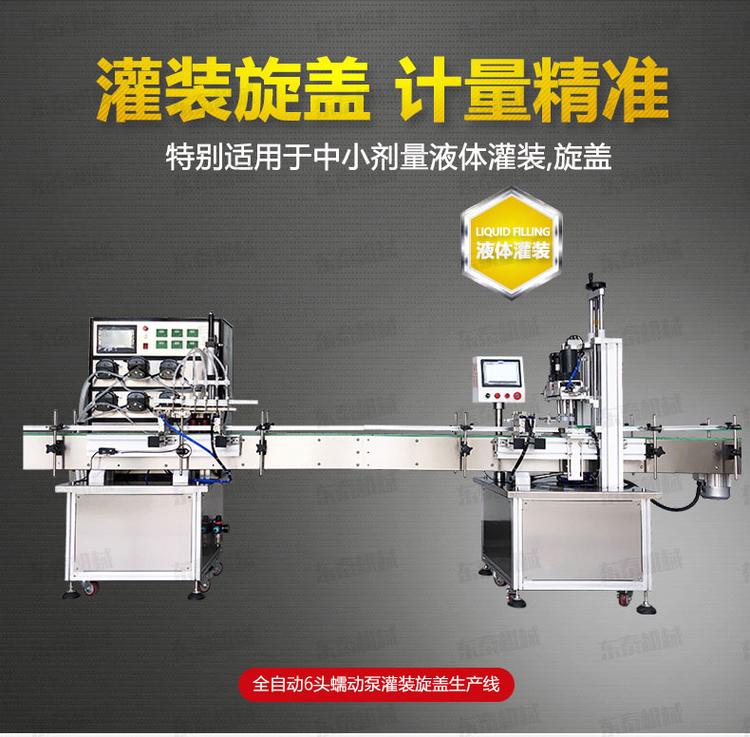 消毒水液體灌裝旋蓋線是我司在吸收先進技術的基礎上研發(fā)的一款新型自動生產(chǎn)線,特別適用于中小劑量液體灌裝和各種圓形瓶蓋,泵頭蓋,噴頭蓋,鴨嘴蓋,噴槍的鎖蓋。同時適用各種材質圓形、異形瓶,各種規(guī)格的瓶子灌裝旋蓋。微電腦自吸蠕動泵自動定量、氣動感應定位灌裝(根據(jù)需要也可不選配升降灌裝結構)等。具有計量精準、灌裝平穩(wěn)、操作簡單、高速分裝、旋蓋等優(yōu)點。廣泛應用于醫(yī)藥、日化、飲料,酒水等行業(yè)